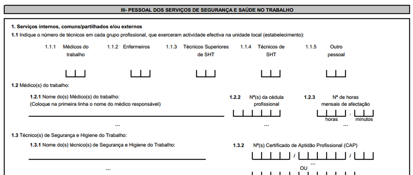 No ANEXO D - Relatório Anual das Atividades do Serviço de Segurança, Higiene e Saúde no Trabalho terá de preencher informações como:
